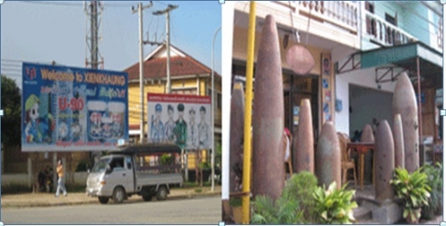 một đoạn QL7, phố chính tx.Phonsavan và khách sạn Dokkhoune ở Phonsavan các nhà hàng khách sạn khai thác tốt hình ảnh chiến tranh-lịch sử của mảnh đất này để hấp dẫn khách du lịch quốc tế đến nơi đây nghiên cứu về Cánh đồng Chum, về người Hmong (Lào Sủng),... cùng dấu vết các trận đánh ác liệt đã diễn ra nơi đây. Vỏ bom mìn có thể thấy ở nhiều nơi, làm hàng rào quán cà phê, trưng bày nơi tiền sảnh khách sạn, làm kẻng treo cổng cơ quan,...có những vỏ bom khổng lồ cao gấp đôi người đứng cạnh gây ấn tượng mạnh như quán cà phê Craters của anh Năm Sài Gòn.