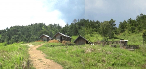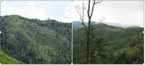 toàn cảnh thung lũng Bom Lọng nhìn từ chân núi Phu Phà Say về hướng Đông-Nam