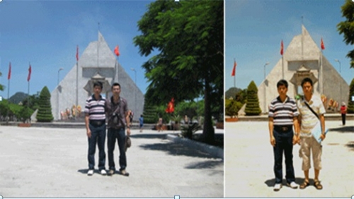 ảnh trái: Minh Tuấn & Phong, ảnh phải: Minh Tuấn & Long tại nghĩa trang Việt-Lào