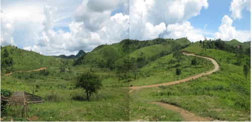 một góc ngã ba Mường Khăm (ảnh bên phải chụp QL7 hướng về Việt Nam)